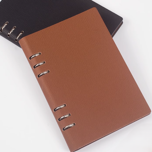取り外し可能なリング式バインダーを採用し、ページの追加や入れ替えが自由自在。