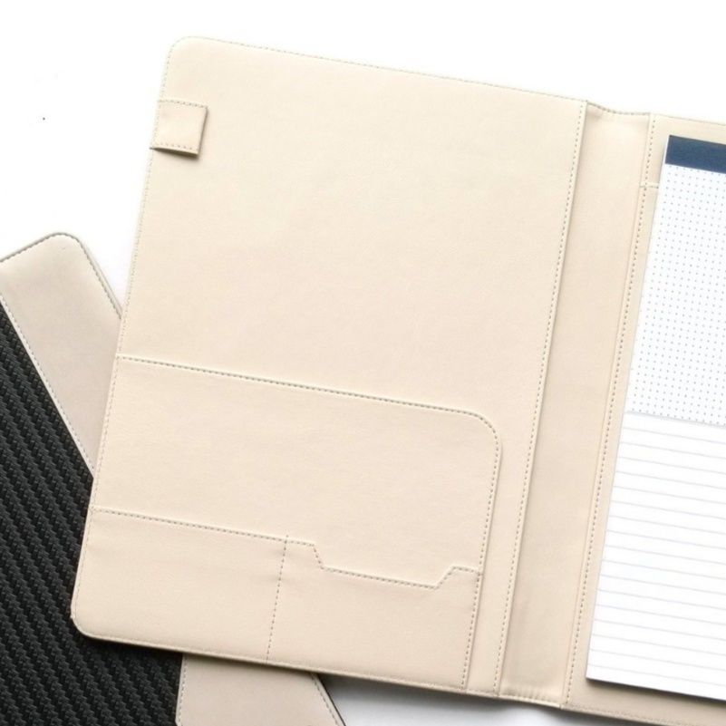 内側には複数のポケットを配置し、名刺やメモ、ペンなどの小物を整理整頓できる実用性の高い仕様です。