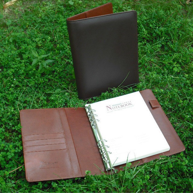 上質な本革を使用したA5サイズのノートカバーです。 内側には複数のカードポケットと収納スペースを備え、機能性と実用性を兼ね備えた設計になっています。 金属製のリング式バインダーでノートの差し替えも簡単です。 しっかりとした縫製と丁寧な仕上げで、使い込むほどに革の風合いが増していきます。 ビジネスシーンや日常使いにも最適な上品なノートカバーです。 長くお使いいただける逸品をお探しの方におすすめします。
