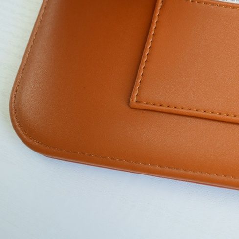 ファスナー開閉式で中身をしっかり保護し、角の丸みを帯びたデザインが柔らかな印象を与えます。