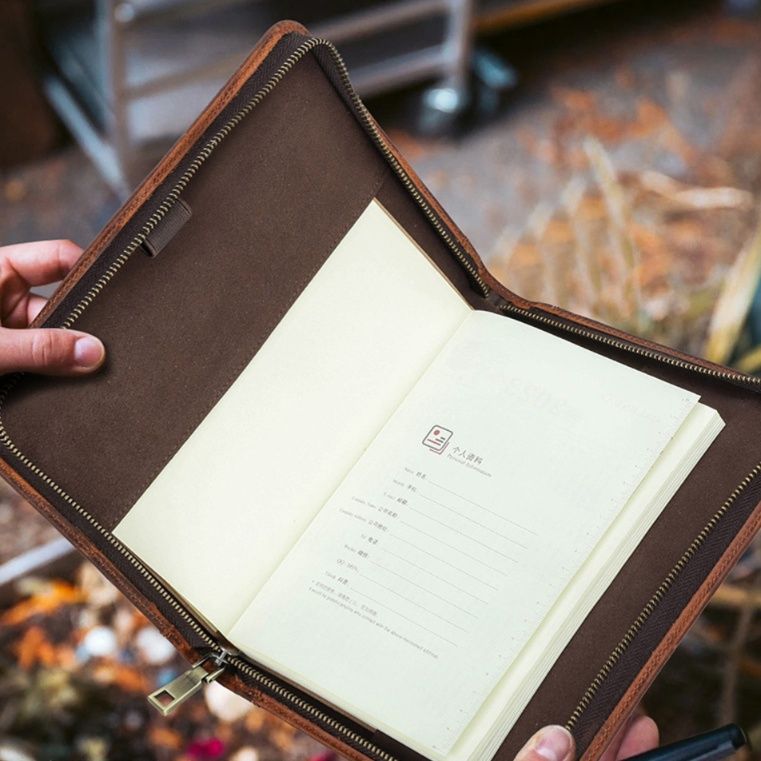 ビジネスシーンからプライベートまで幅広く活躍する実用的なノートカバーです。