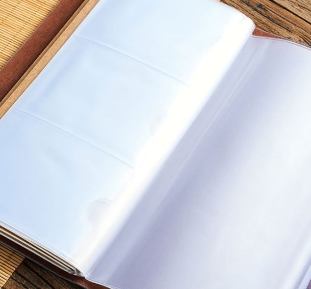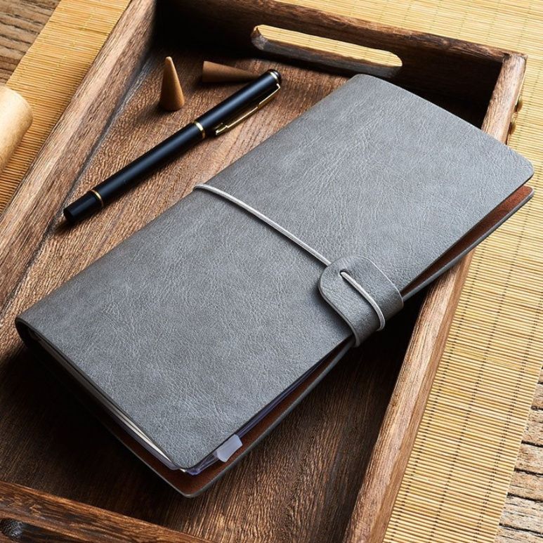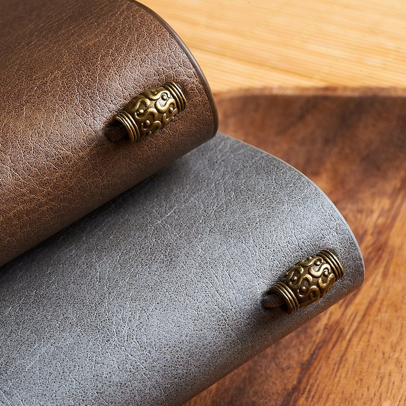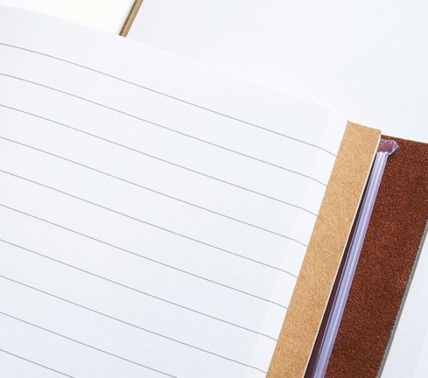 持ち運びに便利なA6サイズのノートカバーです。 カバーには良質な合成皮革を使用し、落ち着いた質感が魅力的です。 横線ページと空白ページの二種類のリフィル(中紙)が各一冊ずつ付属し、用途に合わせて使い分けができます。 合計80枚の大容量で、日記や予定管理、アイデアメモなど様々な用途にお使いいただけます。 ベルト留め具付きで中身をしっかり保護します。