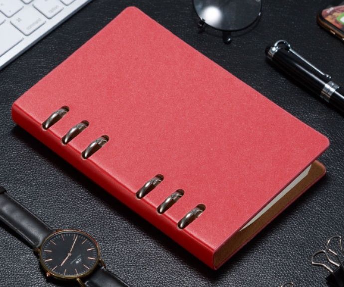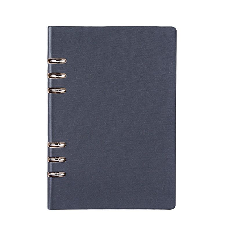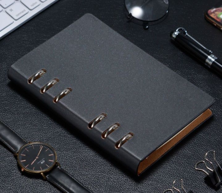 シンプルで洗練されたデザインが魅力のノートカバーです。 A6サイズに対応し、持ち運びやすいコンパクトな大きさで日常使いに最適です。 六連の金属リングが高級感を演出し、ページの開閉もスムーズに行えます。 しっとりとした質感の合成皮革を使用し、手になじむ使い心地を実現しました。 ビジネスシーンからプライベートまで幅広く活躍する実用的なアイテムです。