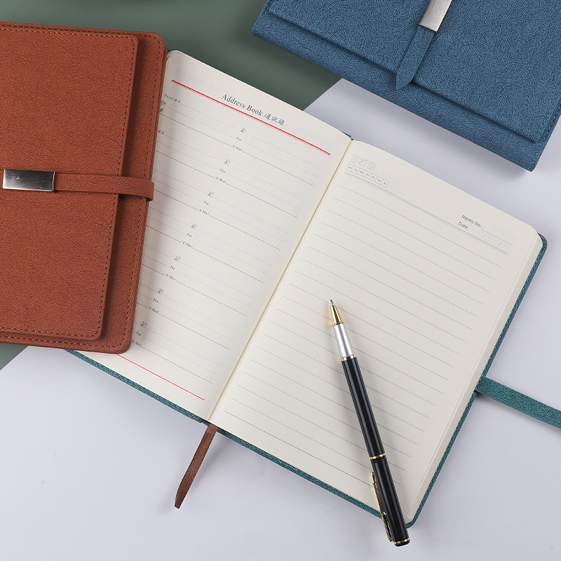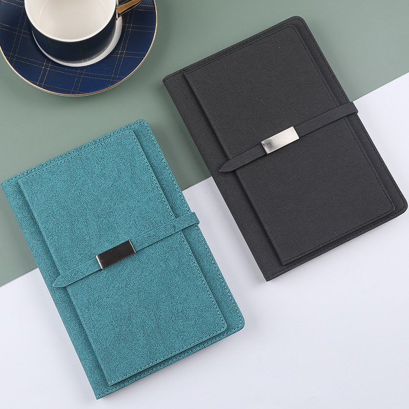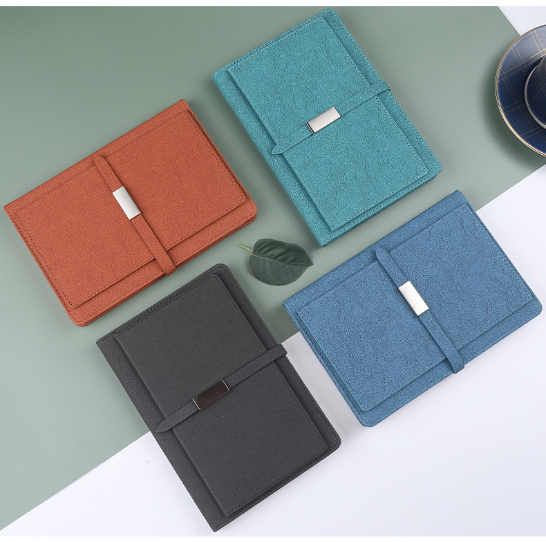 洗練されたデザインが魅力のA5サイズノートカバーです。 表面には上品な質感の素材を使用し、中央の金属製留め具がアクセントになっています。 バンド式の開閉で中身をしっかり保護しながら、スムーズな出し入れが可能です。 ビジネスシーンから日常使いまで幅広く活躍する、機能的で洗練されたノートカバーです。 手帳やメモ帳をスマートに持ち運びたい方におすすめの一品です。