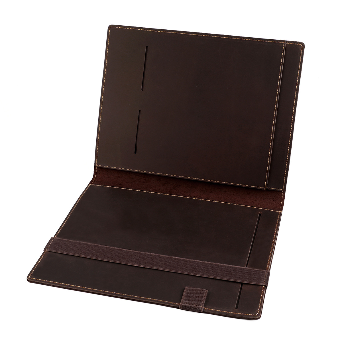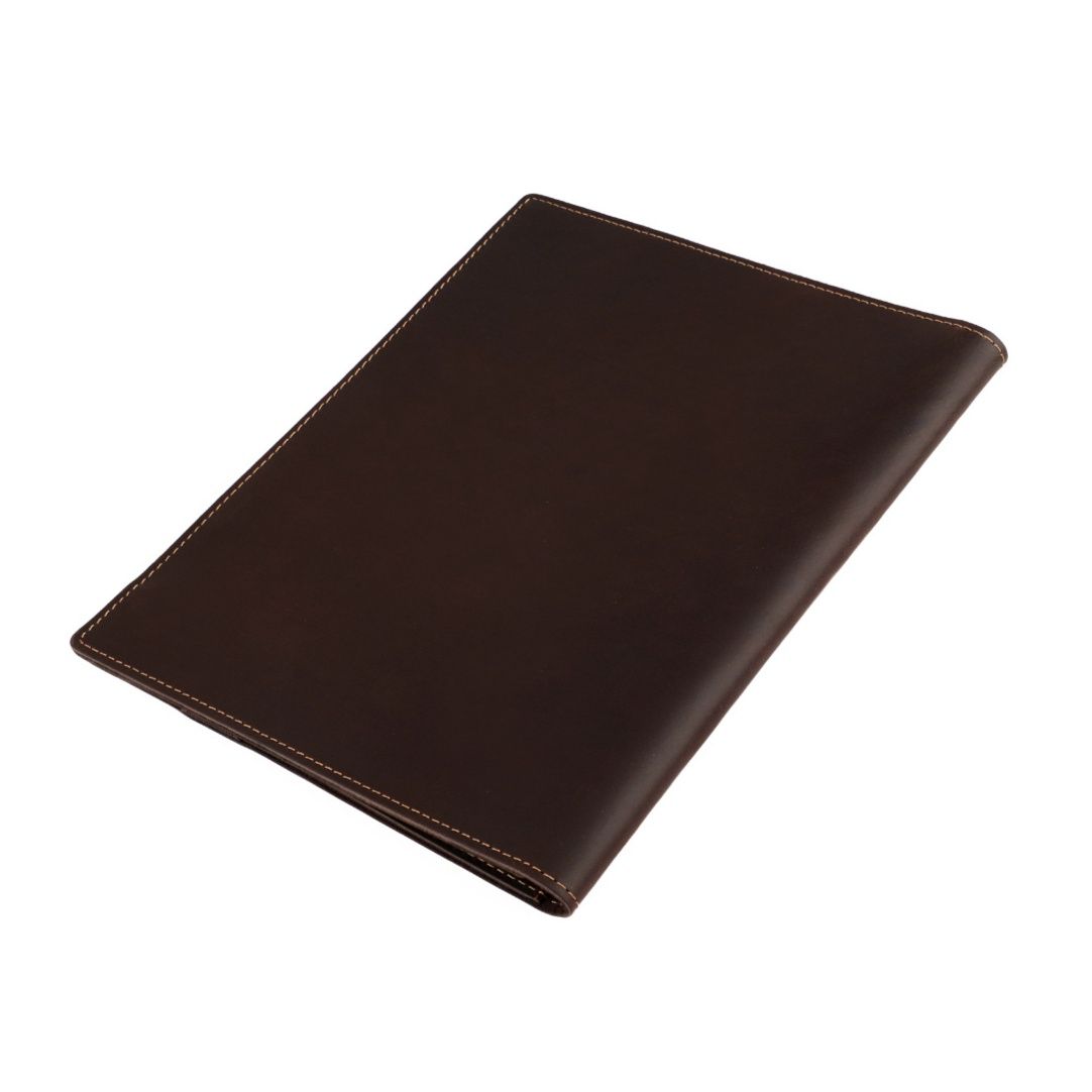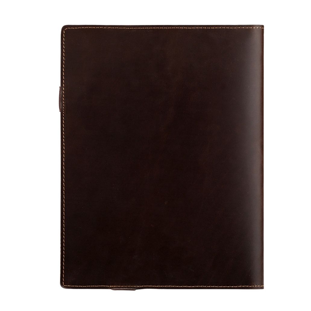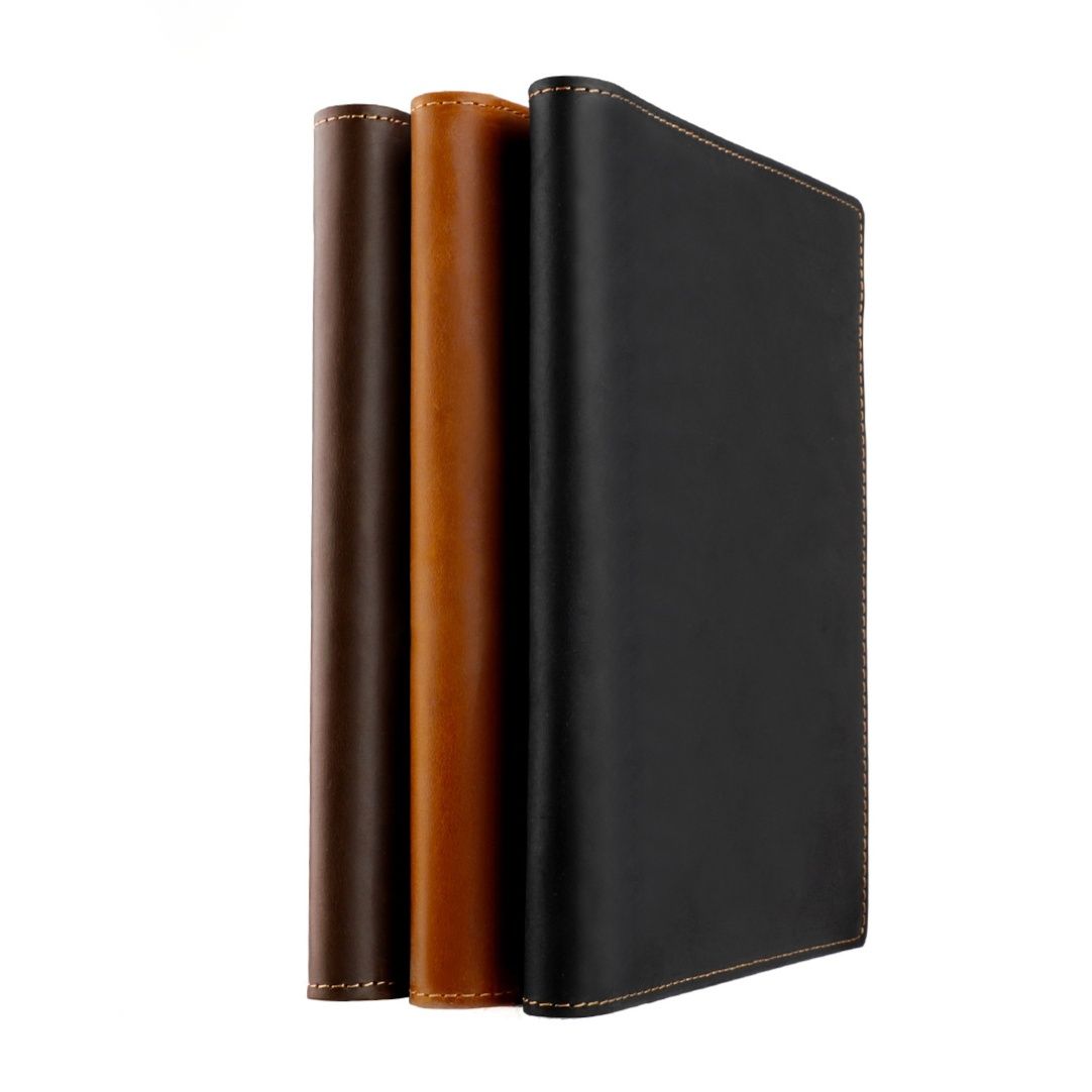 上質な本革を使用したA5サイズのノートカバーです。 内側には複数のカードポケットと端末収納スペースを備え、ビジネスシーンでの使いやすさを追求しました。 ペンホルダーも付いており、筆記具もすっきり収納できます。 丁寧なステッチワークが施された手帳型デザインで、使い込むほどに風合いが増していきます。 仕事や学習の効率を高める実用的なノートカバーとして長くご愛用いただけます。