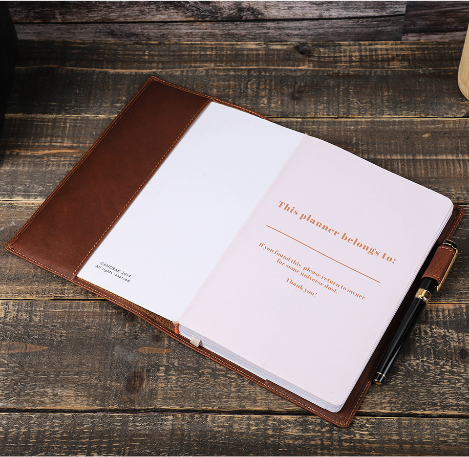 内側には便利なペンホルダーを装備し、筆記具を常に携帯できる実用的な設計です。